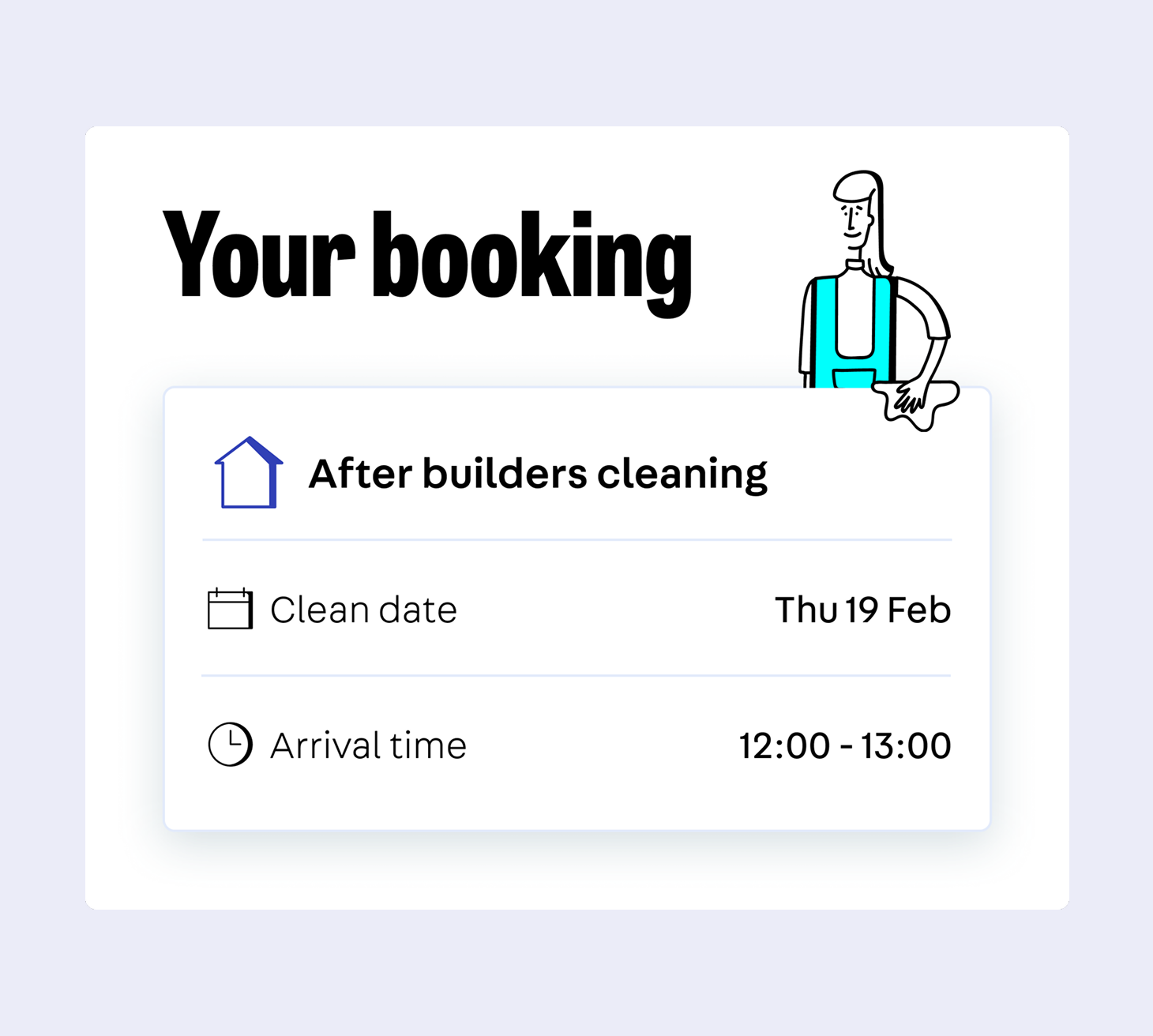 Just tell us about the job, and we’ll show you an instant price for your after builders clean. If you’d like to book, choose a date and time that works for you and pay to secure your slot.