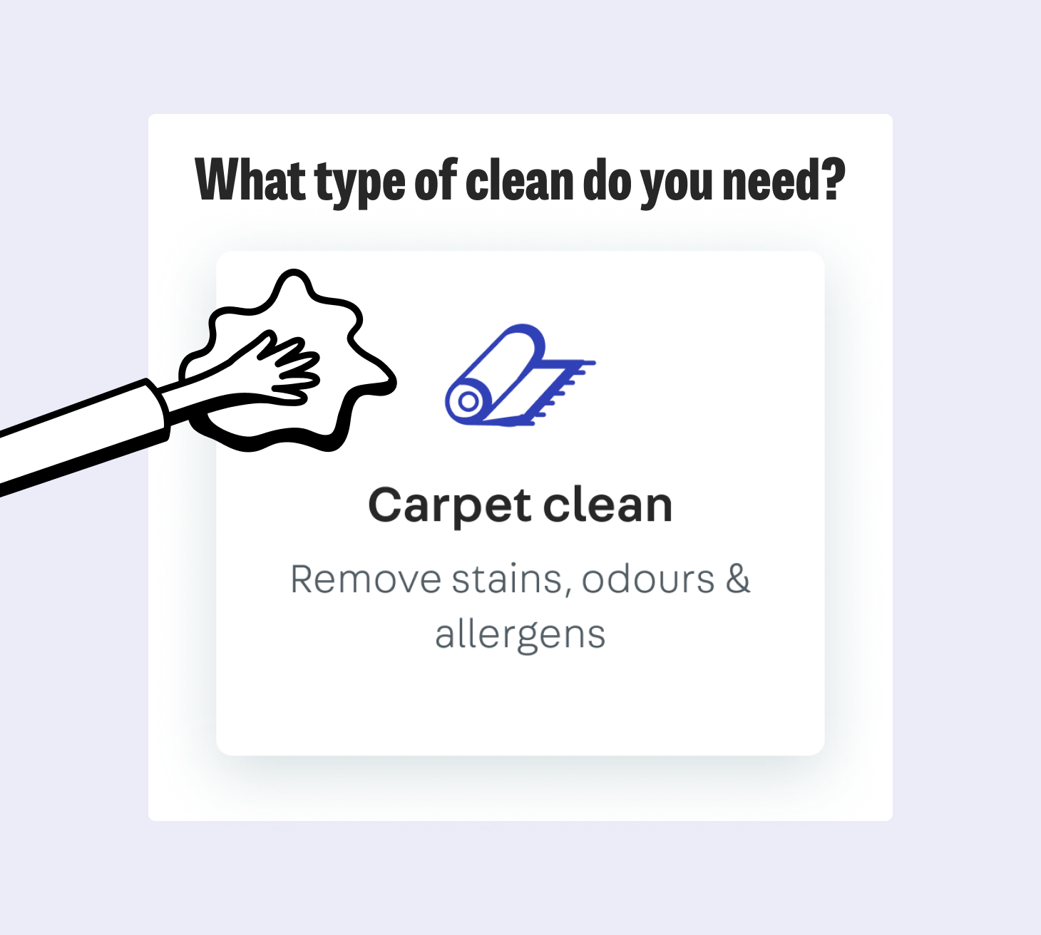 You can book carpet cleaning by filling out our online form. Just tell us about your carpets and we'll show you the price. Choose a date and time & pay to secure your slot.