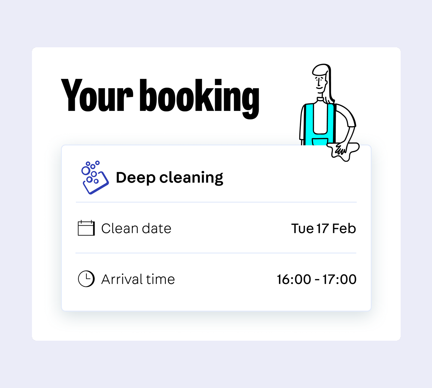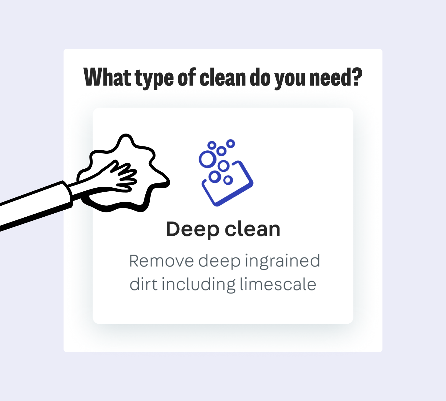 Just tell us about the job, and we’ll show you an instant price for your deep clean. If you’d like to book, choose a date and time that works for you and pay to secure your slot.