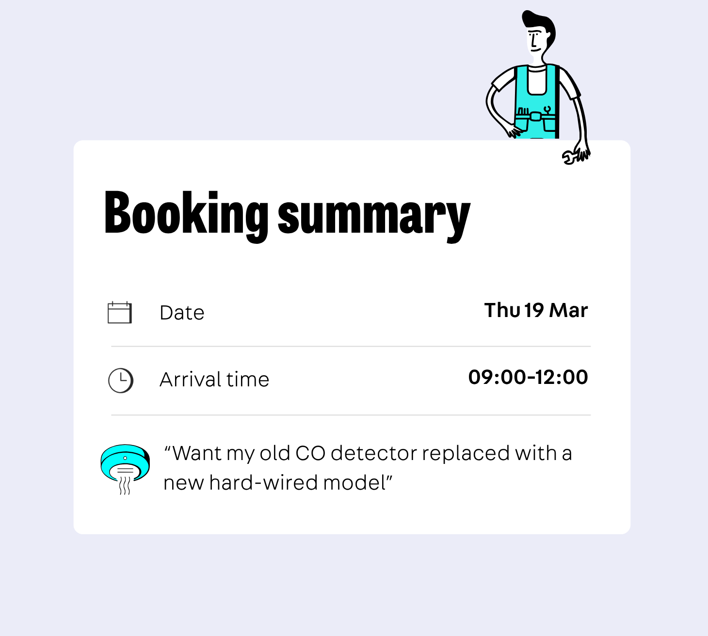 It used to be tricky to find a trusted tradesperson. But we’ve made the whole process seamless – from getting a quote, to securing your slot, to getting your carbon monoxide detector fixed.